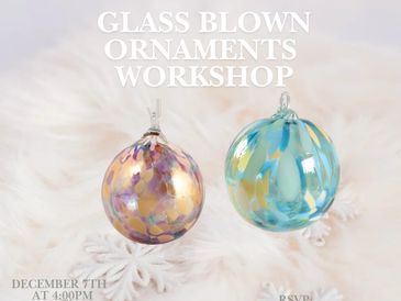 December 7th at 4:00PM create your own one of a kind holiday ornaments. You’ll shape a set of 3 molten glass ornaments, perfect for your tree or as a heartfelt handmade gift.