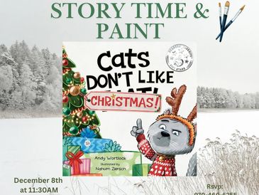 December 8th at 11:30AM, kiddos will be read the story ”Cats Don’t Like Christmas” while they paint a canvas.