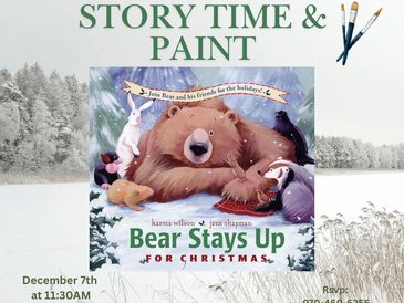 December 7th at 11:30AM, kiddos will be read the story “Bears Stays Up” while they paint a canvas.