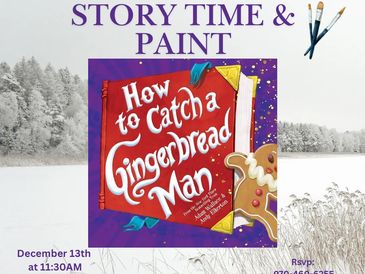 December 13th at 11:30AM, kiddos will be read the story ”How to Catch a Gingerbread Man“ while they paint a ceramic.