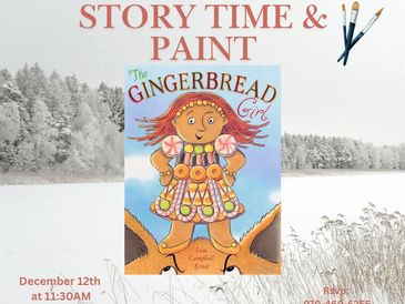 December 12th at 11:30AM, kiddos will be read the story ”The Gingerbread Girl” while they paint a ceramic.