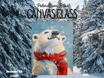 December 8th at 3:00PM participants will be instructor led step by step to paint the Polar Bear Bliss Canvas.