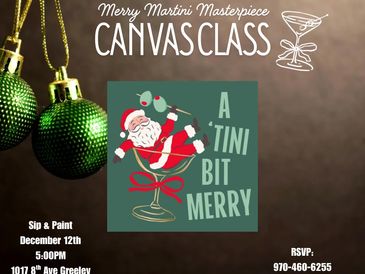 December 12th at 5:00PM participants will be instructor led step by step to paint the Merry Martini Masterpiece!